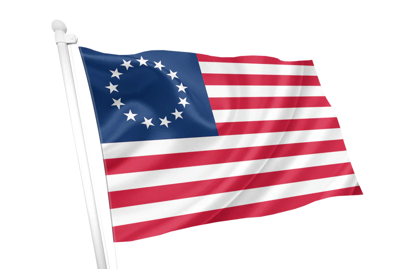 The Betsy Ross Flag is one of the most iconic symbols of the American Revolution. Featuring 13 red and white stripes and a circle of 13 stars representing the original colonies, this flag embodies the birth of the United States of America. According to tradition, Betsy Ross sewed the first flag in 1776 at the request of General George Washington. A timeless symbol of freedom, history, and patriotism, this flag continues to be proudly displayed across America.