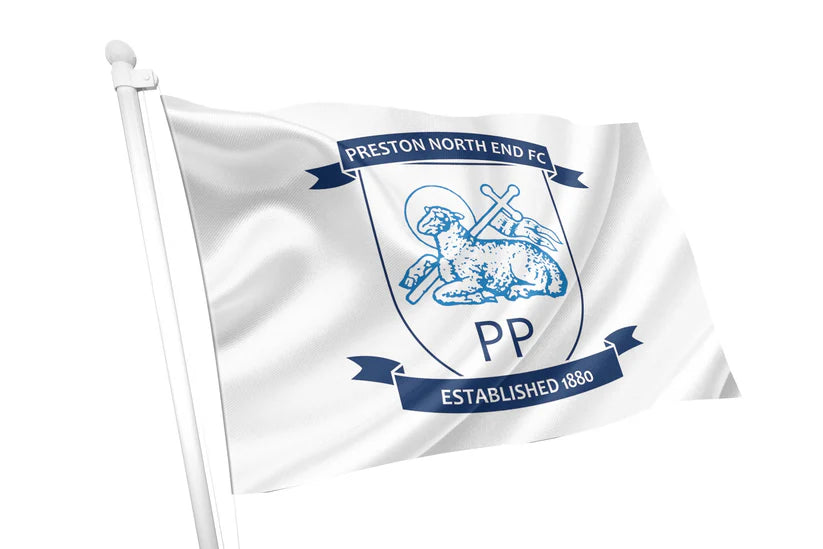 Show your support for Preston North End Football Club with our premium-quality knitted polyester flag, proudly made in Ireland, and shipped worldwide. Our flag is digitally printed for vibrant colours and sharp details, ensuring your team spirit stands out, whether you're cheering from home or at the game.