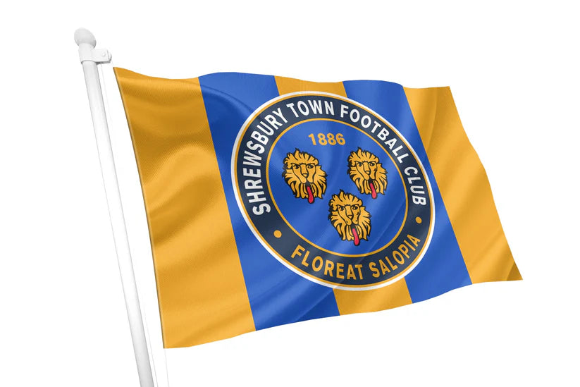 Show your support for Shrewsbury Town Football Club with our premium-quality knitted polyester flag, proudly made in Ireland, and shipped worldwide. Our flag is digitally printed for vibrant colours and sharp details, ensuring your team spirit stands out, whether you're cheering from home or at the game.